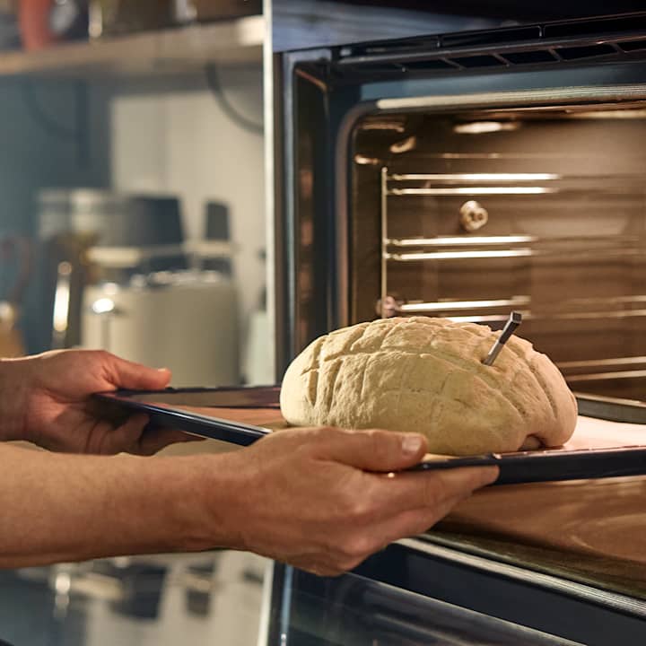 •Pieczywo | Gdy wnętrze ciasta osiągnie docelową temperaturę, otrzymasz powiadomienie, aby wyjąć pieczywo z piekarnika. Jeżeli wolisz ciemniejszą skórkę, wydłuż czas pieczenia o kolejne 3–5 minut po otrzymaniu powiadomienia.