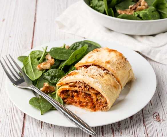 Wysokobiałkowa rolada z serka wiejskiego z indykiem i pieczarkami