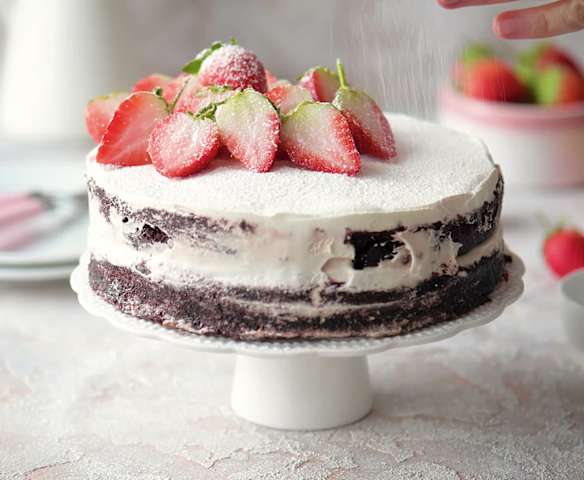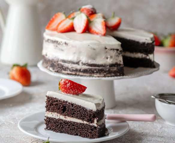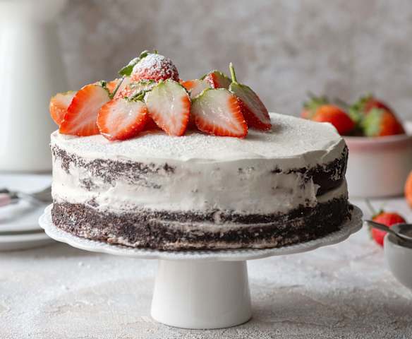 Kakaowy torcik z truskawkami